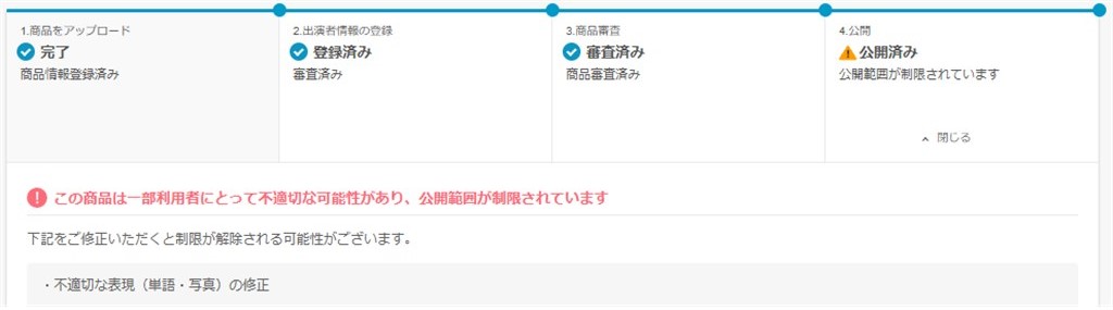 今回も何回も修正を繰り返し今に至りますが、未だに制限は付いてます。(写真に問題があるとの事)